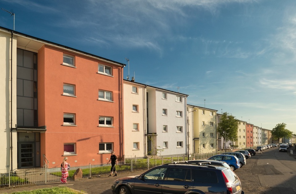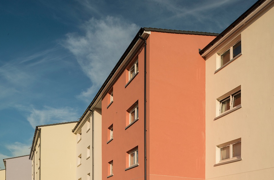 Retrofit of 206 homes including overcladding and environmental improvements. We have greatly improved the thermal efficiency of homes and bright, new colours chosen by residents have regenerated the area. The project also included an art installation “Milestones” where reclaimed sandstone blocks were incorporated into the fencing. The stones are carved with pictures and words recorded throughout the community consultation.